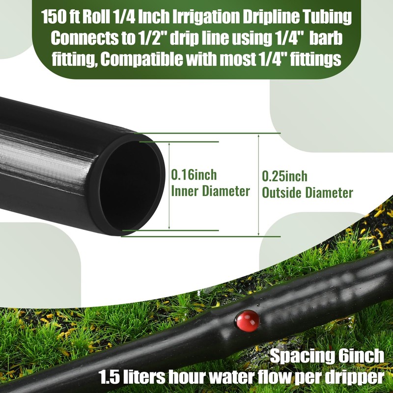 - Universal Accessory Compatibility: this hydroponics dripline can accommodate standard 1/4 inch hook fittings, offering flexibility for system setup and expansion; It is good for diverse garden types, making it essential for your gardening needs