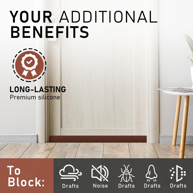 Innconee 26 Feet Silicone Seal Strip and 2"W x 39"L Door Draft Stopper Door Weather Stripping Sealing Adhesive Tape Under Door Sweep for Window Shower Glass Gaps Garage Blocker Noise Cold Air(Brown)