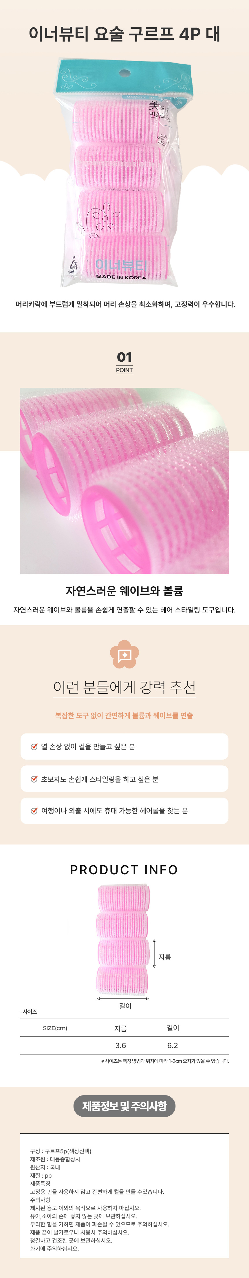 Inner Beauty Magic Hair Rollers (4-Pack, Large, Pink 0746) for Volume, Root Lift, Styling, and Bangs Roller 5ea