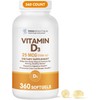 360-Day Supply, Once Daily Use: Get a full year of support in one bottle—360 easy-to-swallow softgels provide 1000 IU of Vitamin D3 each. Just one softgel a day with food helps maintain bone, immune, and overall health. No need to reorder monthly—convenient and cost-effective.
