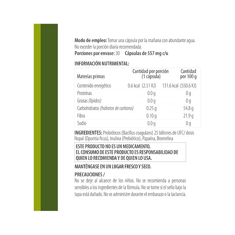 | Ingredientes especiales | Cúrcuma, Vinagre de Manzana, Jengibre, Inulina y Papaína |