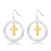 INNERDIVA Two Tone Dangle Earrings with Cross Pendant Hammered Drop Dangle Earrings Bohemian Earrings