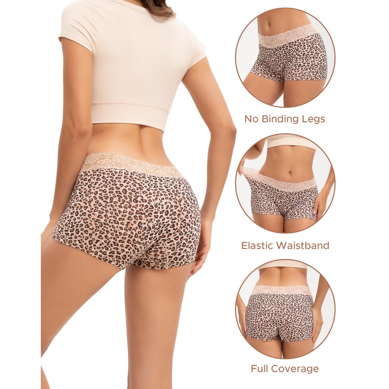 - Good Choice for Women: These womens lace panties come in trendy colors like leopard and light pink, showcasing women's fashion sense. These boyshorts for women are available in sizes from x-small to 2x-large
