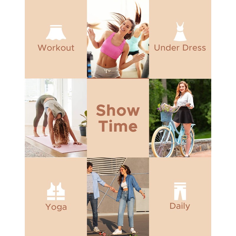 - Women's Under Dress Shorts : These slip shorts for under dresses are ideal for wearing with skirts, offering protection against exposure. They can also be used as biker shorts, providing comfortable coverage and preventing the discomfort of thigh chafing