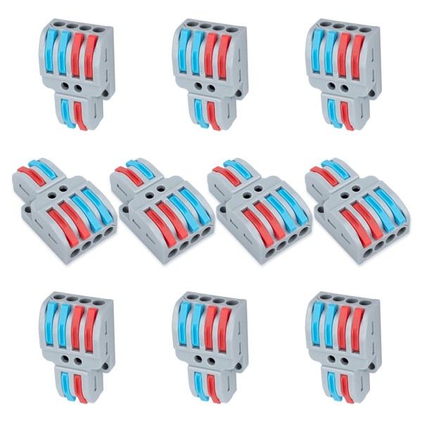 Innfeeltech 10 Pcs Connecting Terminal, SPL-42 Connection Clamp, with 2 In 4 Out Lever Compact Cable Connector for Flexible and Rigid Conductors