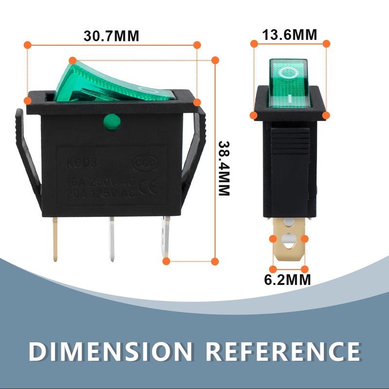 - Package Include: 6 Pcs Mini Rocker Switch Green 3 Pins ON/OFF