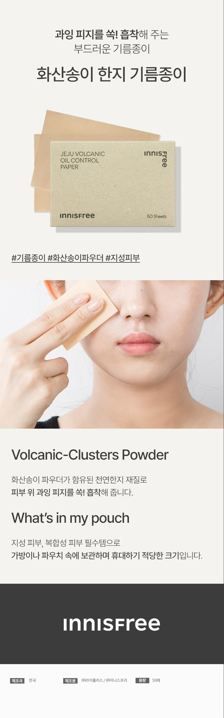 innisfree 이니스프리 화산송이 한지 기름종이 50매