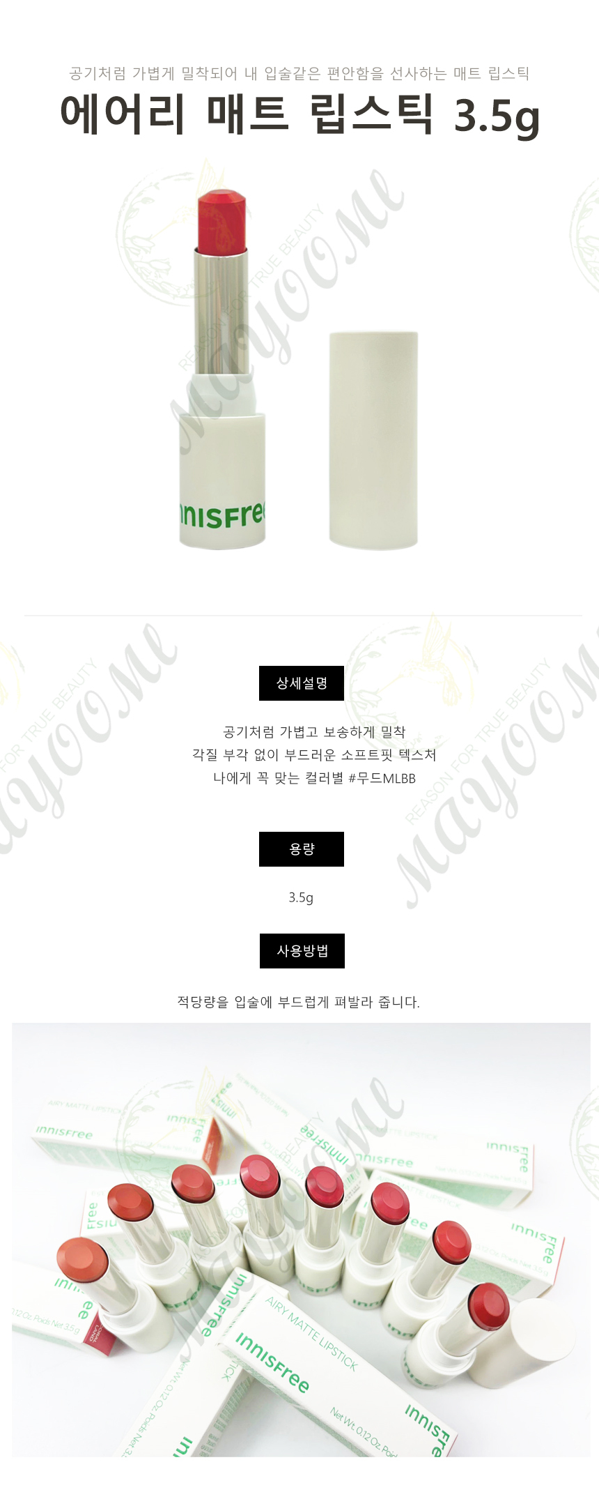 Innisfree Airy Matte Lipstick 3.5g / 이니스프리 에어리 매트 립스틱 3.5g