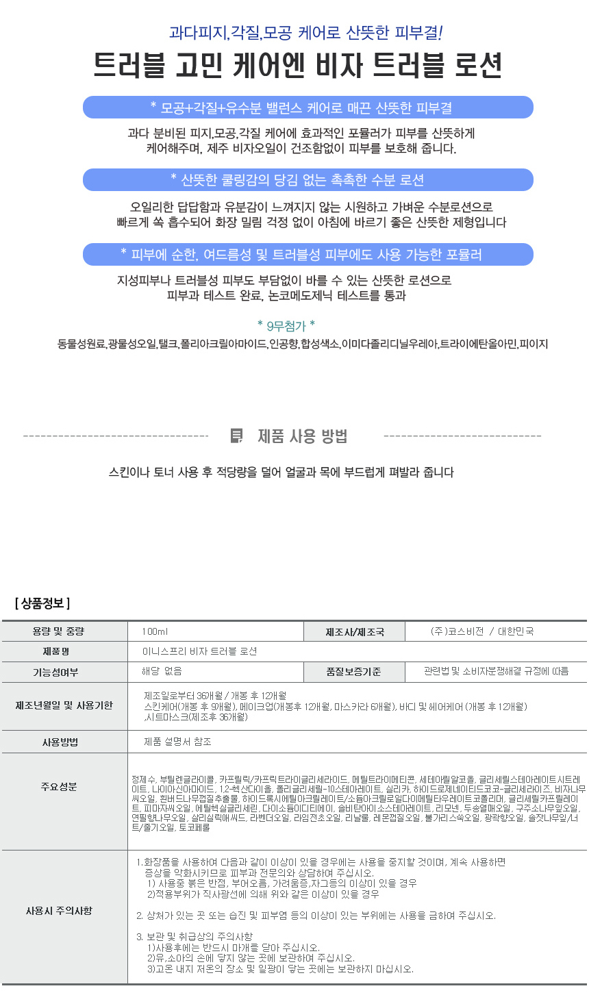 Innisfree Bija Trouble Lotion 100ml / 이니스프리 비자 트러블 로션100ml