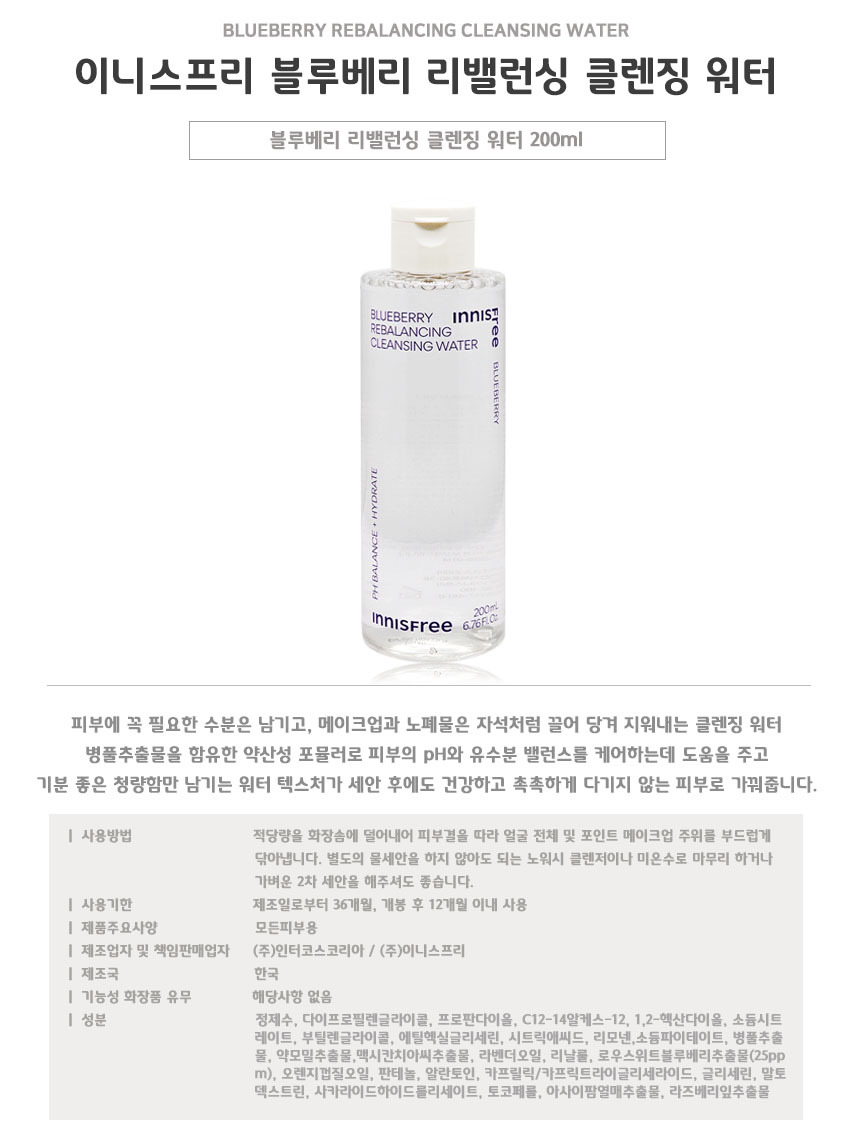 Innisfree Blueberry Rebalancing Cleansing Water 200ml / 이니스프리 블루베리 리밸런싱 클렌징 워터 200ml