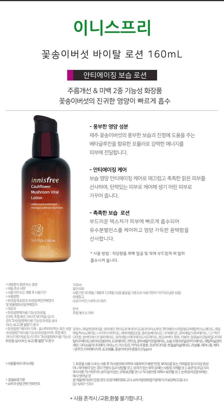 이니스프리 꽃송이버섯 바이탈 로션 160ml 주름개선+미백 2중 기능성 화장품">