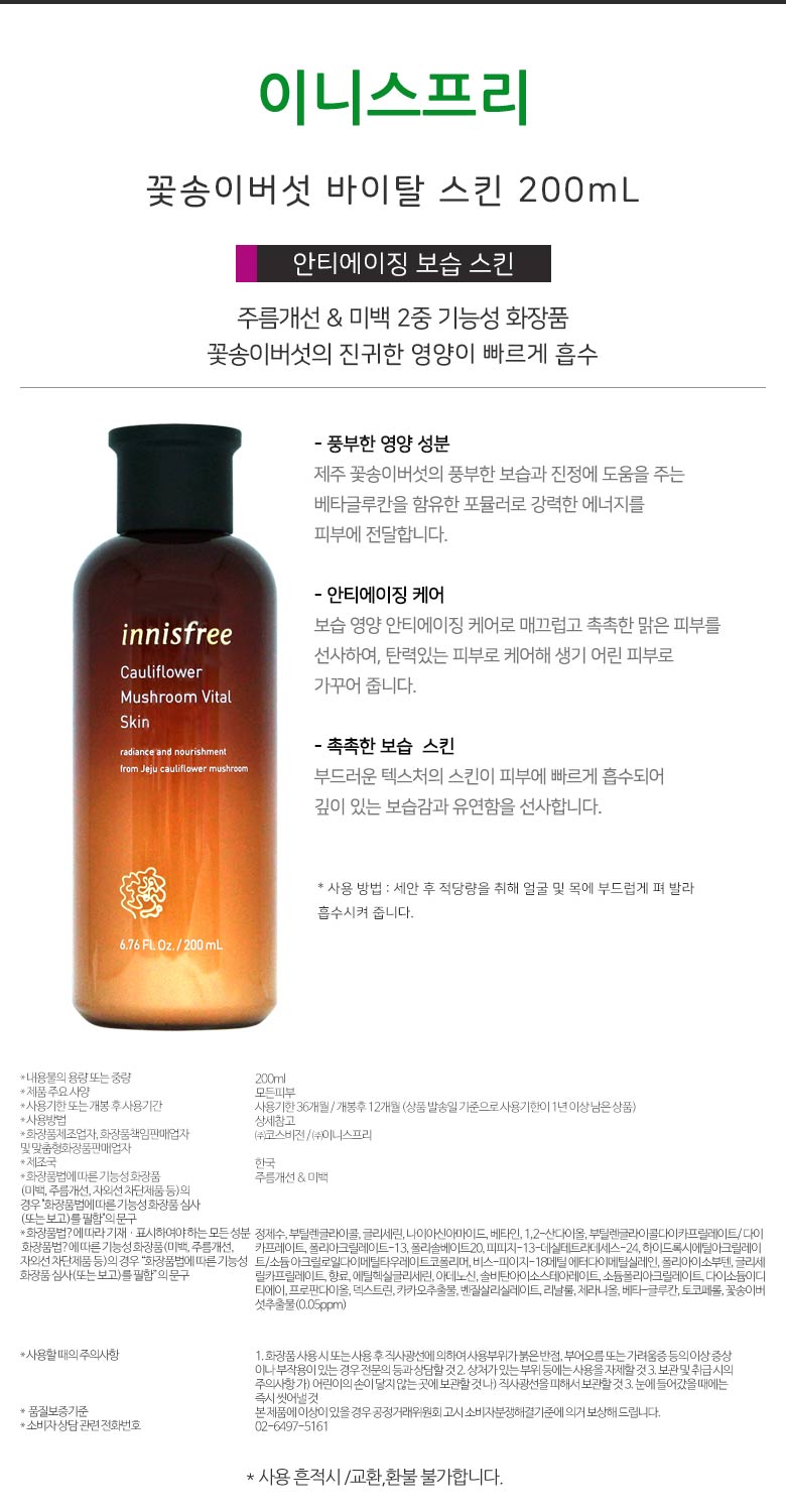 이니스프리 꽃송이버섯 바이탈 스킨 200ml 주름개선+미백 2중 기능성 화장품">