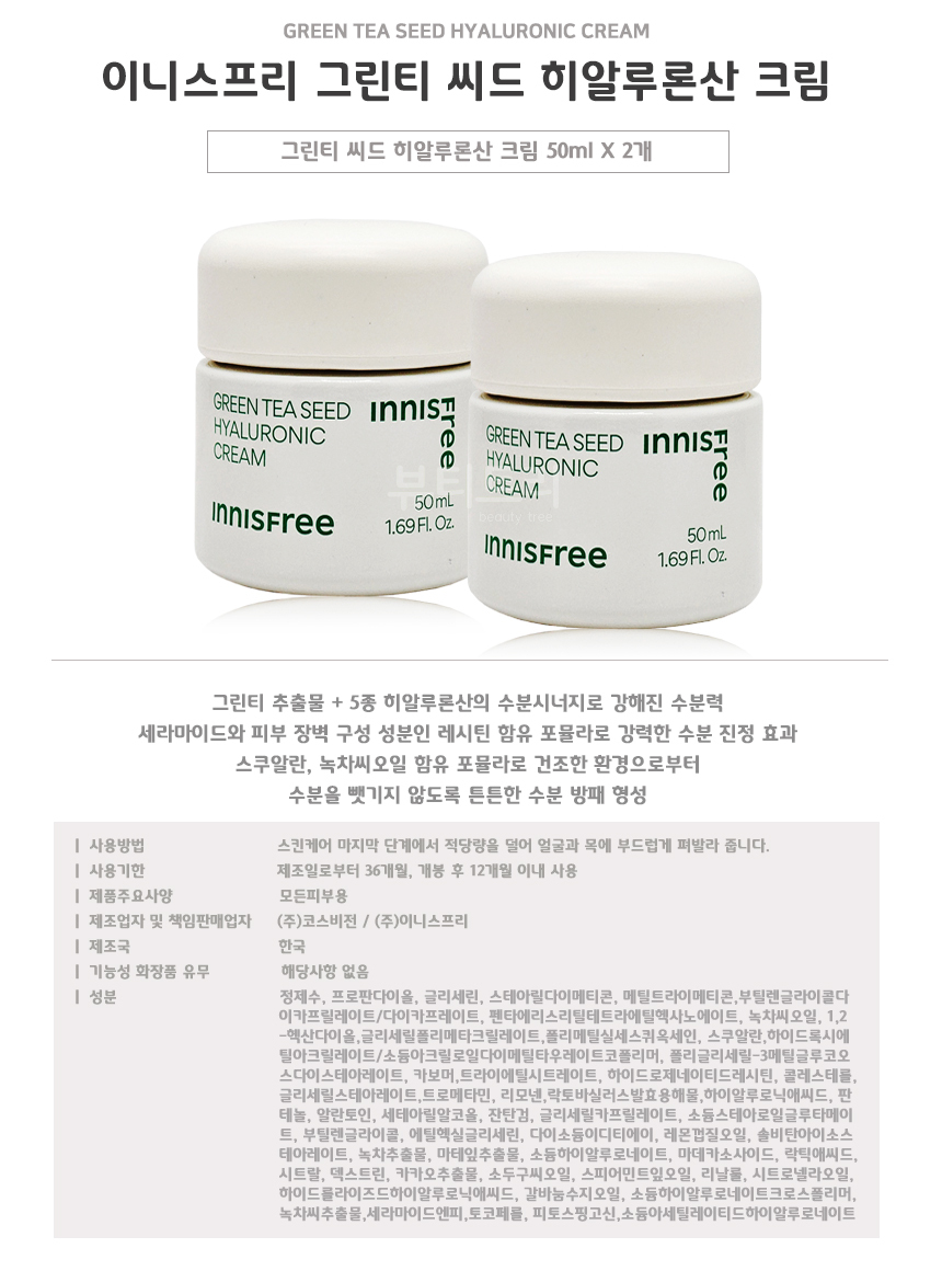 이니스프리 그린티 씨드 히알루론산 크림 50ml + 50ml