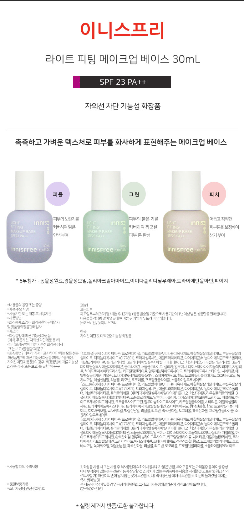 Innisfree Light Fitting Makeup Base 30ml / SPF23 PA++ / 이니스프리 라이트 피팅 메이크업 베이스 30ml SPF23 PA++