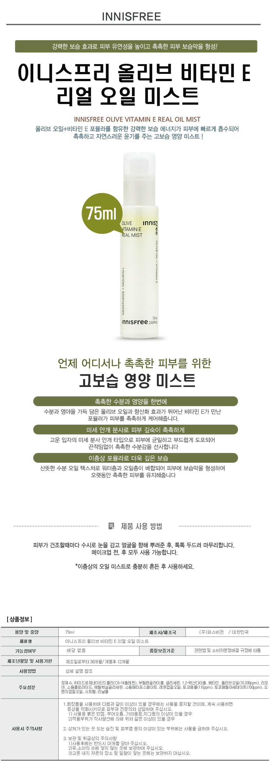 Innisfree Olive Vitamin E Real Oil Mist 75mL / 이니스프리 올리브 비타민 E 리얼 오일 미스트 75mL