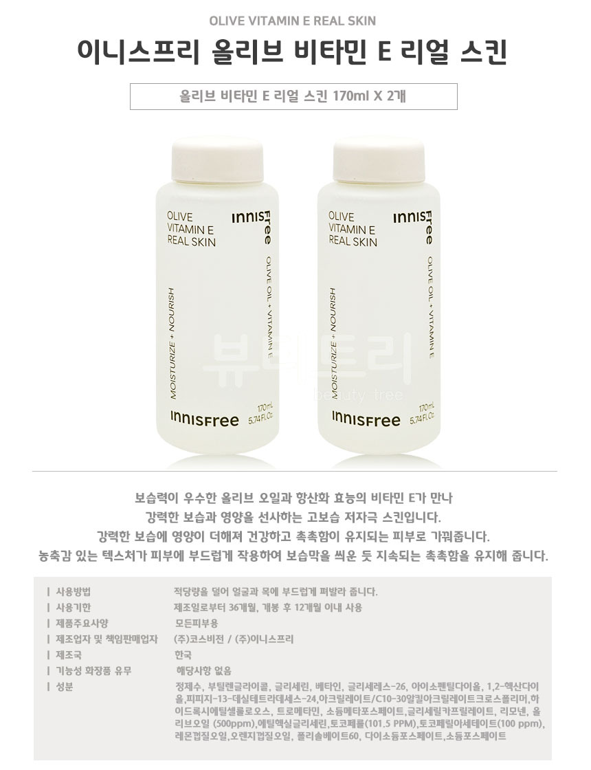 Innisfree Olive Vitamin E Real Skin 170ml X 2 / 이니스프리 올리브 비타민 E 리얼 스킨 170ml X 2개