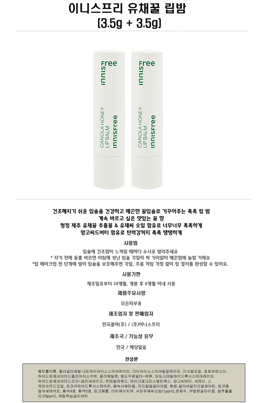 Innisfree Rapeseed Honey Lip Balm 2 pcs / 이니스프리 유채꿀 립밤 2개