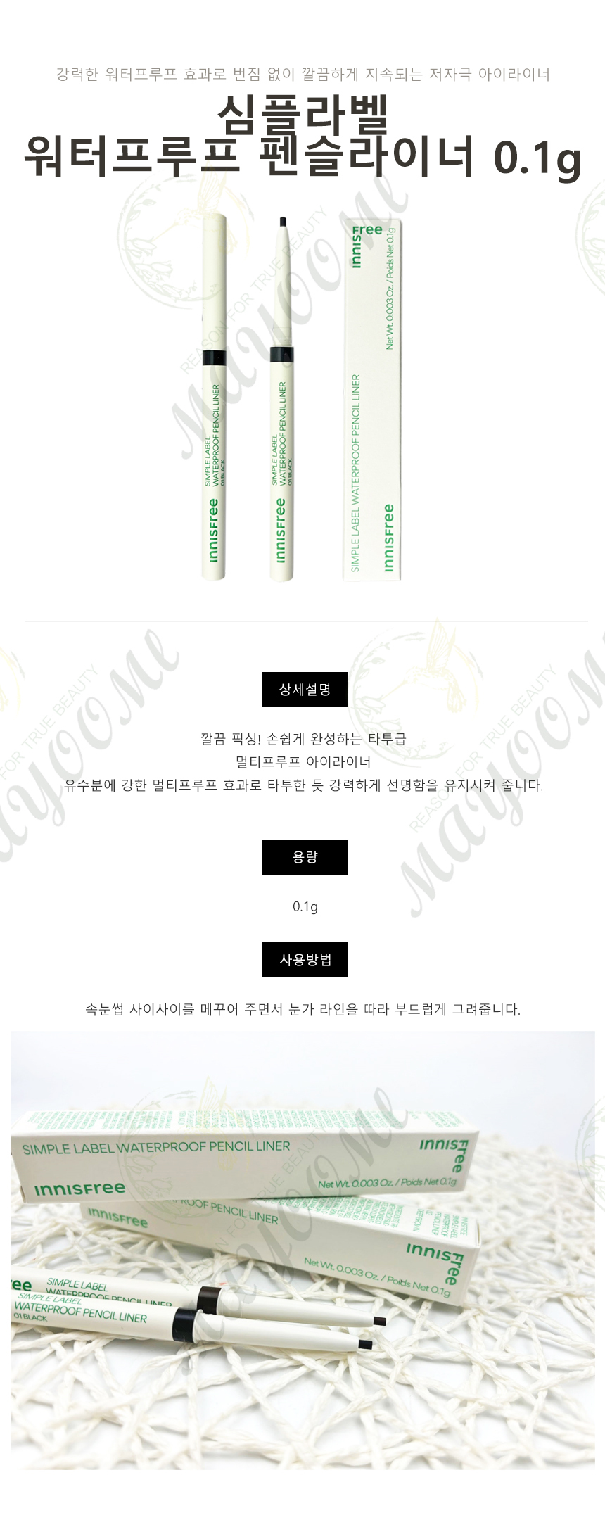 Innisfree Simple Label Waterproof Pencil Liner 0.1g / 이니스프리 심플라벨 워터프루프 펜슬라이너 0.1g