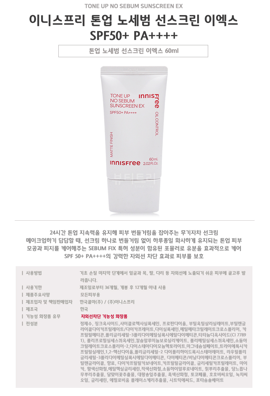 Innisfree Tone Up No-Sebum Sunscreen EX 60ml / 이니스프리 톤업 노세범 선스크린 EX 60ml
