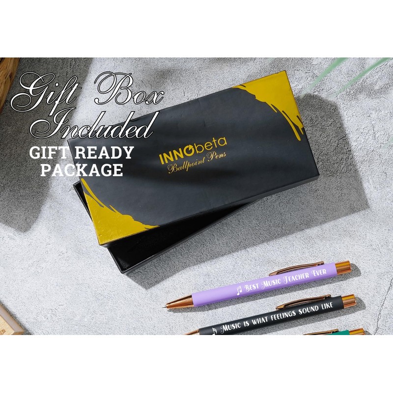 InnoBeta Music Teacher Gifts for Women, Ballpoint Pen Set of 4, Funny Gifts for Music Teacher in Teacher Appreciation Day, Birthday, Christmas