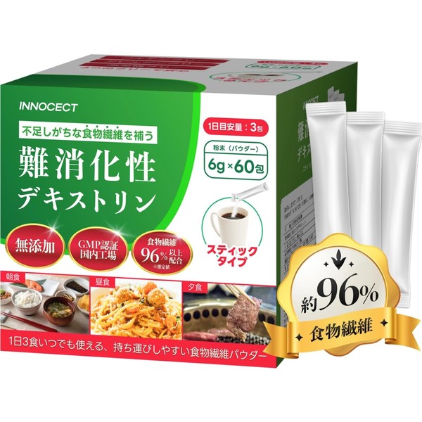 INNOCECT 難消化性デキストリン 個包装 大容量(6g×60包) 食物繊維96%以上 水溶性食物繊維 スティックタイプ 持ち運びに便利 INNOCECT イノセクト