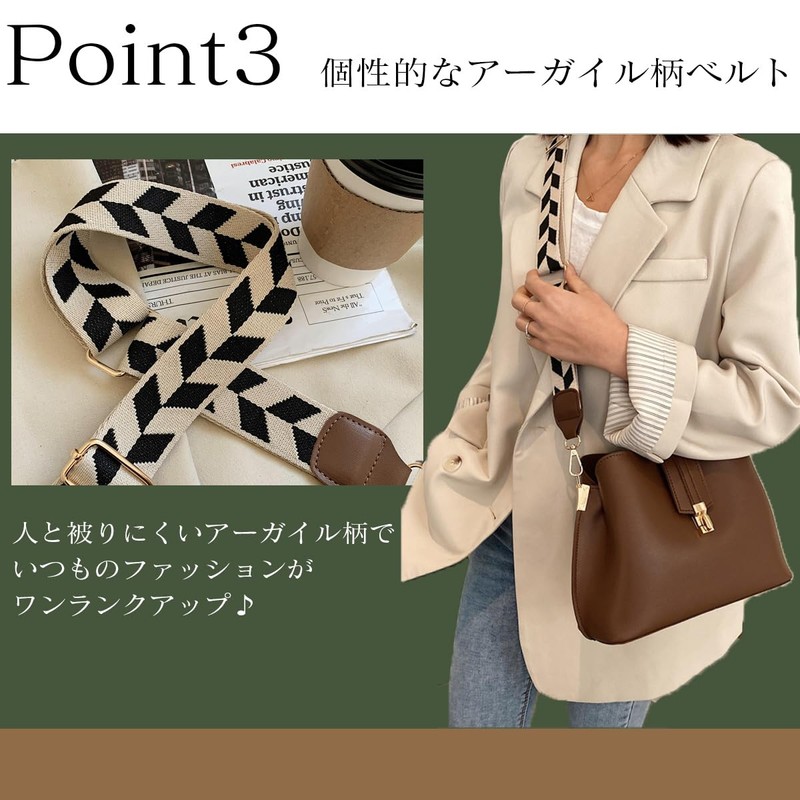 Wide gusset for secure storage A convenient bag that can be used for daily use, such as commuting to work or school, traveling, and everyday outings. The argyle pattern strap is stylish and cute, making it perfect for an elegant outfit or casual outfit.