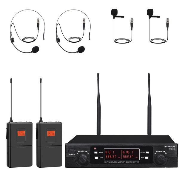 innopow 200-Channel Wireless Microphone, Wireless Lavalier Microphone Dual UHF Bodypack Cordless Lavalier Mic System Set