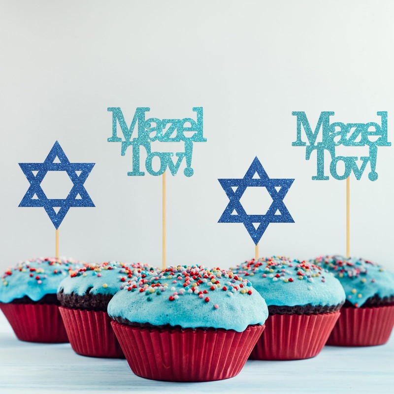 INNORU Mazel Tov Cupcake Toppers, Congratulations Party Decorations, Engagement, Baby Shower, Bar Mitzvah, Birthday, Wedding, Jewish Party Decorations Supplies, Pack of 24 Blue Glitter