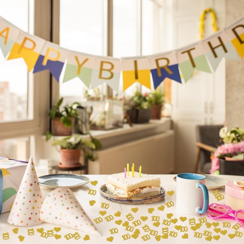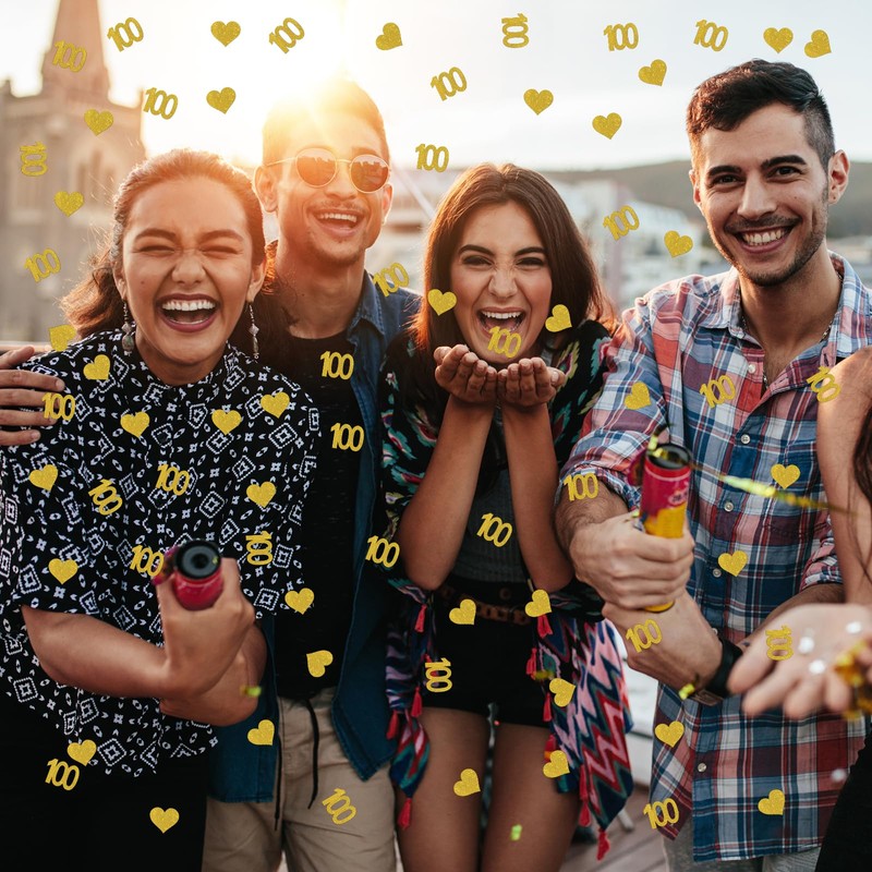 INNORU Number 100 Confetti Gold Glitter, Happy 100th Birthday Table Confetti, One Hundred Years Paper Scatter, 100th Anniversary Cheers to 100 Years Party Table Decorations Confetti, 120pcs