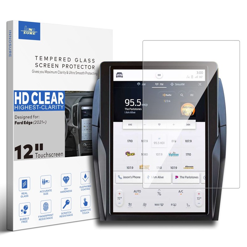 INNOSURE Tempered Glass Glossy Screen Protector Designed for (2021-2023) Ford Edge SE/SEL/ST-Line/Titanium/ST Navigation 12 Inch Touchscreen Accessories (HD Clear)