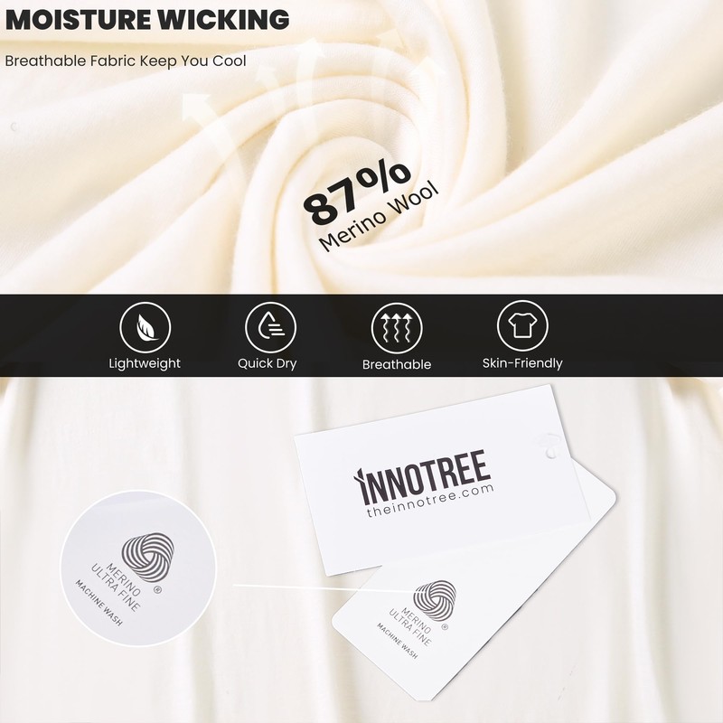 - 【Premium Merino Wool, Baby-Soft & Itch-Free】Crafted from ultra-fine 17.5-micron 150GSM merino wool (thinner than human hair), this merino wool t-shirt feels luxuriously soft against sensitive skin. Perfect for hiking, travel, or daily wear without irritation.
