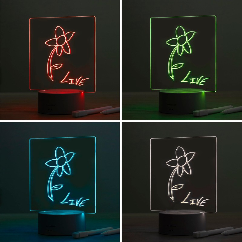 - Creative lighting: with this LED board, you can write and customise all kinds of illuminated notes, sayings and messages that will attract everyone's attention. It consists of a PP base and a transparent and durable acrylic board. Thanks to the elegant and functional design, it fits well on all types of tables, shelves, desks, etc.