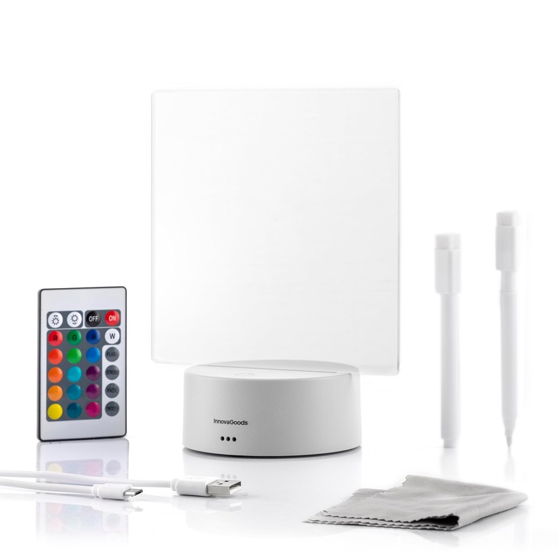 InnovaGoods® Message Board, Whiteboard with LED Light with Multicoloured 5 Lighting Modes, Whiteboard Including Remote Control and Accessories, Ideal for Office, Telework and Bedroom