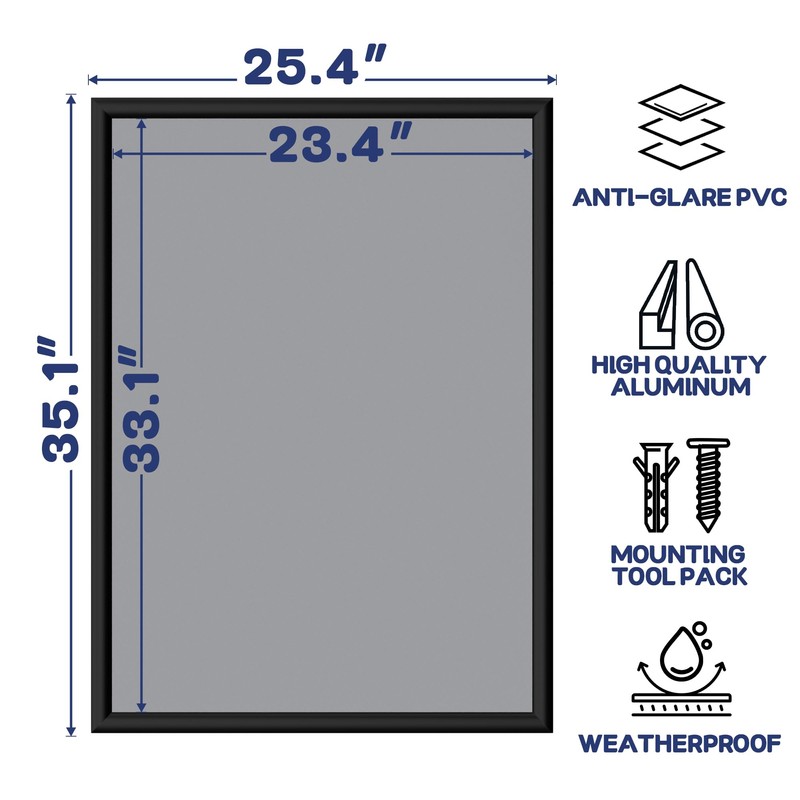- CLASSIC DESIGN—24” x 33” with sturdy and premium black satin anodized aluminum metal frame with waterproof seal increases the product's area of use while reinforcing the products’ structure, making it not easy to bend and break during transportation.