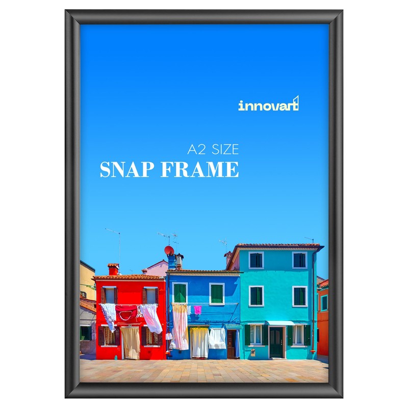 INNOVART Black Aluminum Snap Frame for Poster 16” x 24”, Front Load Snap Frame Poster with PVC Protective Film for A2 Size, Metal Picture Frame Wall Mounting, Easy Open Aluminum Display Profile