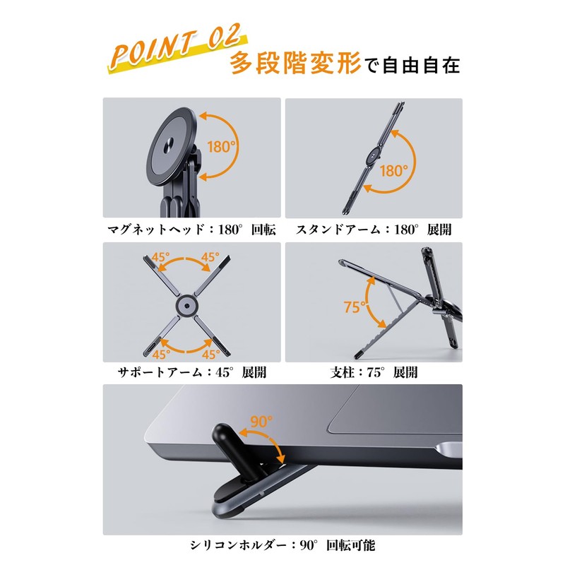 Innovative 4-in-1 Laptop Tablet Stand, Smartphone Stand, MagSafe Compatible, Foldable, Stable, Ultra Lightweight, Angle Adjustment, Stylish, Computer Desk, Portable, Going Out, Home, Storage Pouch