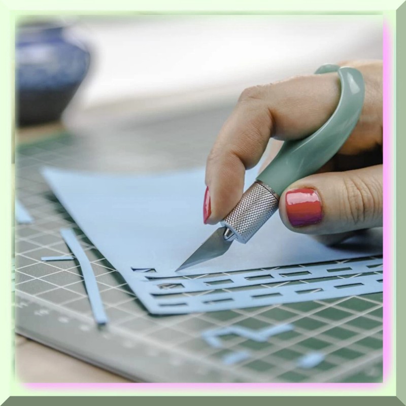 - 1. Precision and Comfort: Our ergonomic hobby knife offers the ultimate experience in precision and comfort. With its carefully designed loop shape, it provides maximum control, allowing you to effortlessly navigate through various materials such as wood, plastic, paper, leather, and more. 2. Effortless Trimming: Equipped with a carbon steel straight edge blade, our hobby knife effortlessly trims and cuts through lightweight materials. Whether you're working on scrapbooking projects, assembling 16071 kits, or engaging in paper crafts, this versatile tool ensures clean and precise cuts every time. 3. Anti-Roll Design: Bid farewell to frustrating accidents with our hobby knife's innovative anti-roll design. This feature keeps the knife securely in place, preventing it from rolling off your work surface and causing potential mishaps. Enjoy peace of mind as you work on your artistic endeavors, knowing that your knife is always within reach. 4. American-Made Masterpiece: Crafted with pride in the USA, our hobby knife is a true masterpiece. Designed to meet the highest standards of quality and durability, it is built to withstand the test of time. Whether you're a professional artist or a hobbyist, this American-made tool is the perfect companion for all your artistic pursuits.