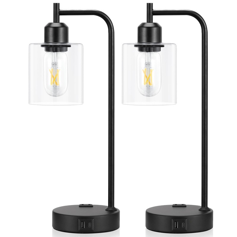 - MINIMALIST AND INDUSTRIAL STYLE LAMPS - This vintage desk lamp is designed with thick cylinder glass shade and a rust-proof matt black metal body,perfectly combining classic and rustic styles!This modern lamp adds style to your place even in the light off. Suitable for all kinds of places such as bedrooms, living rooms, guest roomsdormskitchens, offices, cafes, etc.Also perfect gift choice for festivals, birthday and housewarming~