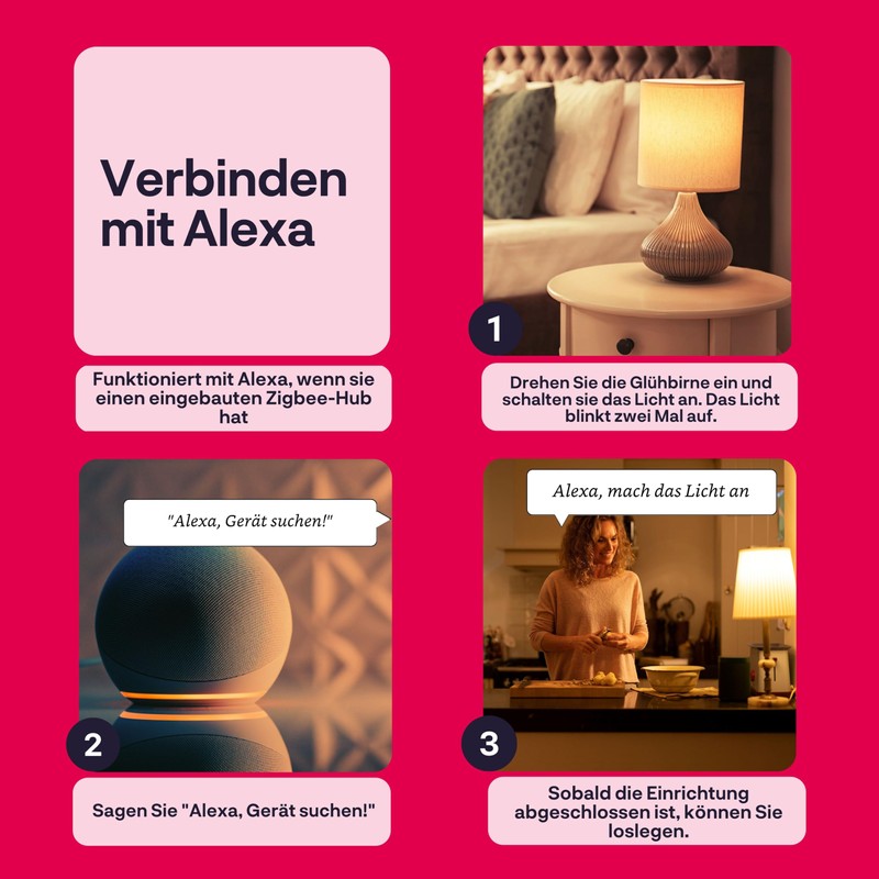 - Intelligente Steuerung: Verwenden Sie Ihre Lieblings-App für die drahtlose Steuerung, Dimmung, Automatisierung und Sprachsteuerung. Funktioniert mit Alexa (geeignete Bridge erforderlich).