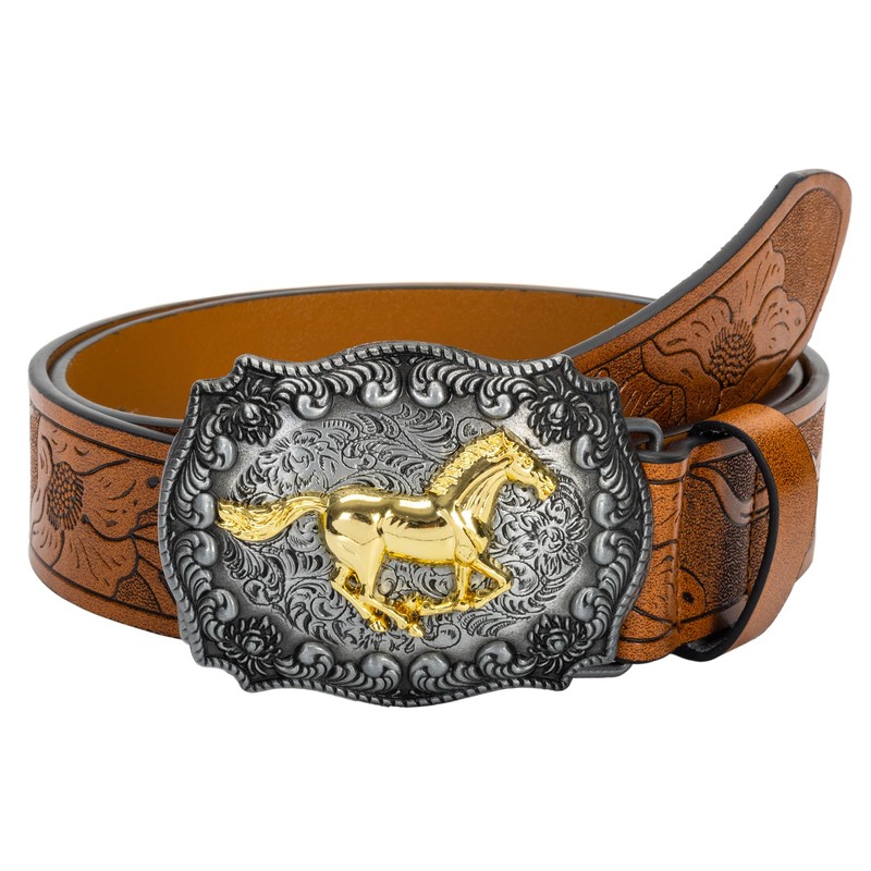 - 【Classic Western Cowboy Belt】Cowboy belt is made of quality leather, decorated with embossed flower patterns, classic and beautiful, the belt buckle is made of quality zinc alloy, reliable for a long time use, not easy to break and fade.