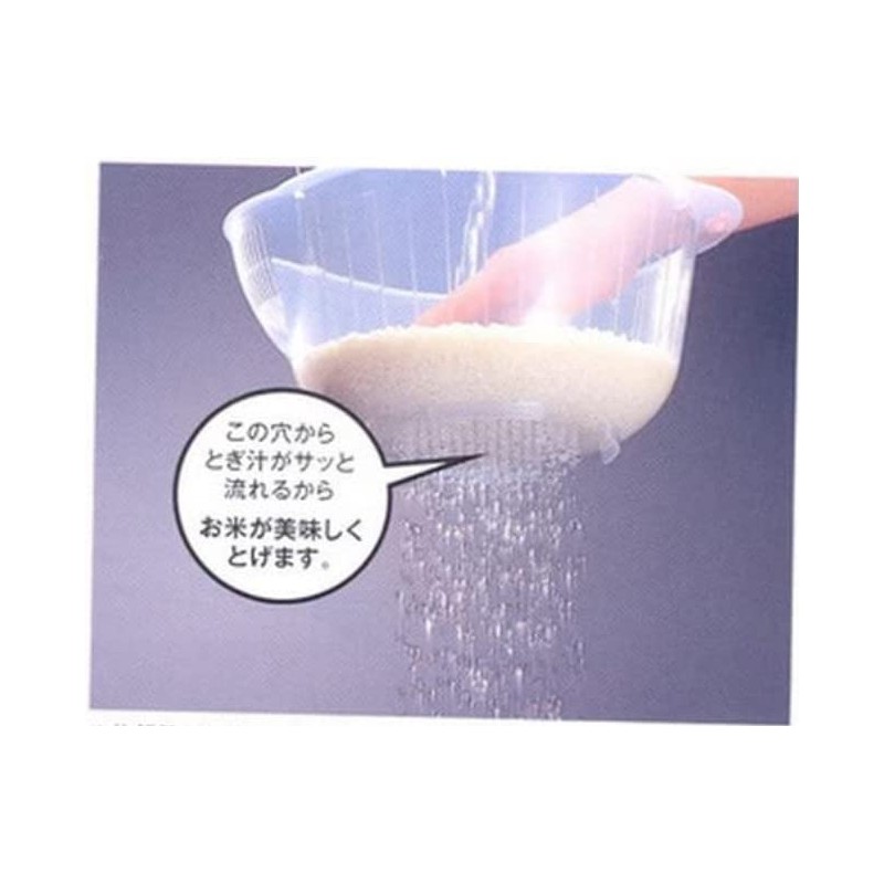 Inomata Japanese Rice Washing Bowl with Side and Bottom Drainers, Clear Limited Edition (Pack of 2)