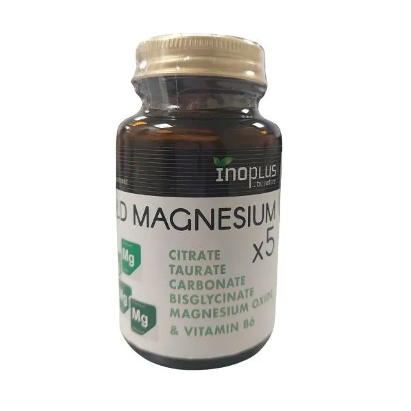 Inoplus Gold Magnesium x5 is an effective supplement that combines five forms of magnesium for optimal absorption and greater benefits, while also containing the valuable vitamins B2 and B6.