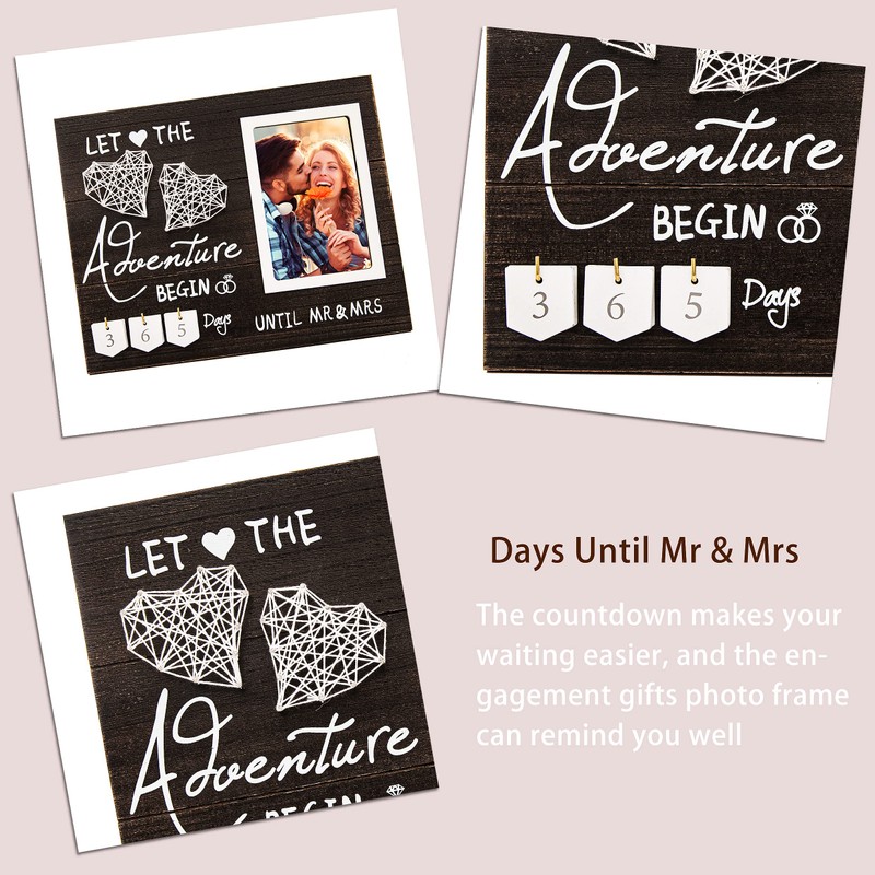 - 💕Countdown Frame: Are you looking forward to the arrival of the special day? The romantic countdown frame comes with quotes that "XX days until Mr & Mrs.", you can see exactly how many days are left until the big day, and makes your waiting easier. The countdown function brings you closer to your special day. Couples will be very surprised when they receive gifts. Best engaged gifts for her. Bride to be gifts.