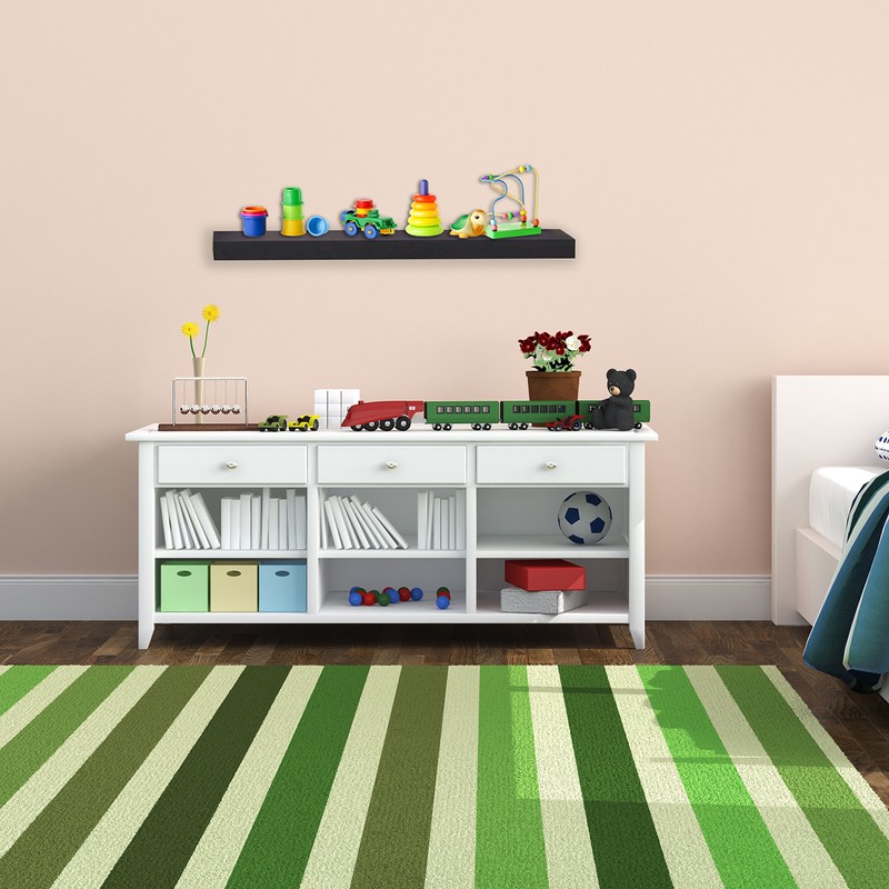Organize and declutter your home with this versatile black simple hidden bracket shelf. Purchase more than one of this shelf and fill an empty wall with a creative display of candles, small books or accessories. Ledge features a groove to hold pictures in place and is deep enough to hold small items. Shelves show no visible support and actually appear to be floating.