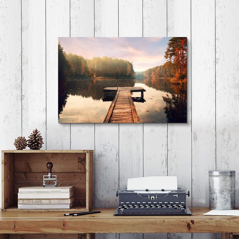 About the Contemporary Nature Landscape Canvas Art Lake Pier Print Wall Picture for Home Living Room Decorations: