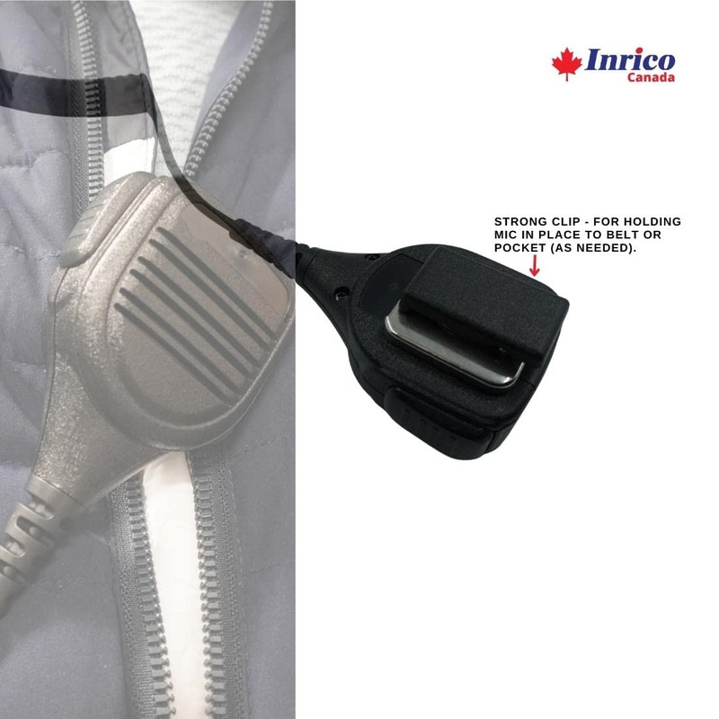 Speaker microphone for Inrico T320, T620, T640A Push-to-talk over Cellular (PoC) radios.