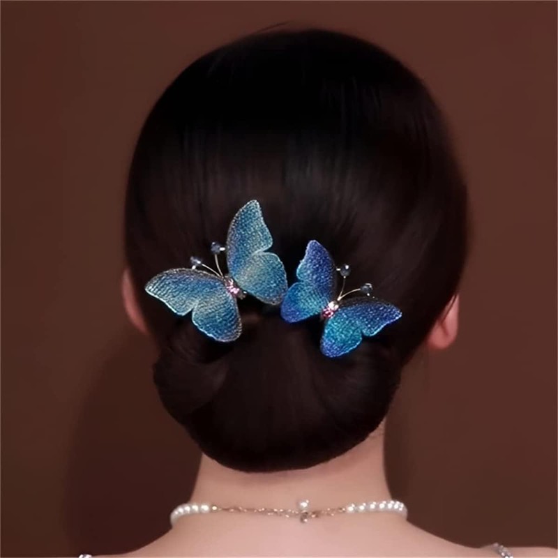 Ins Style Elegant Lazy Hair Curler, French Twist Hair Bun Maker, Lazy Flower Hairpin,Rhinestone Hand-Embroidered Flower Hair Accessory (Blue Butterfly)