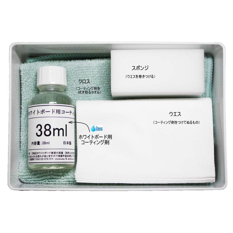 - (Contents) Product Name: ins Value Whiteboard Coating Agent 1.3 fl oz (38 ml) (Approx. 12 - 15 sheets (width 180 cm x height 90 cm) whiteboard application volume 2.5 - 3.0 ml)) Accessories: 4 cleaning cloth, 1 sponge and 1 instruction manual (English language not guaranteed)