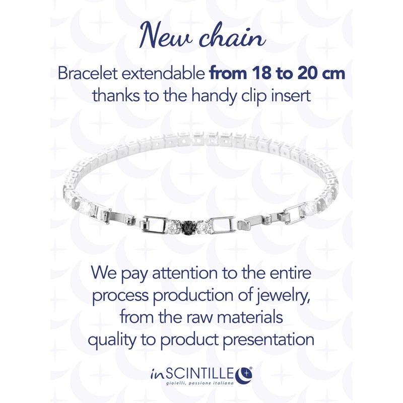 - Dimensions: adjustable bracelet length 17 or 20 cm – the size variant refers to the size of the zirconia stones
