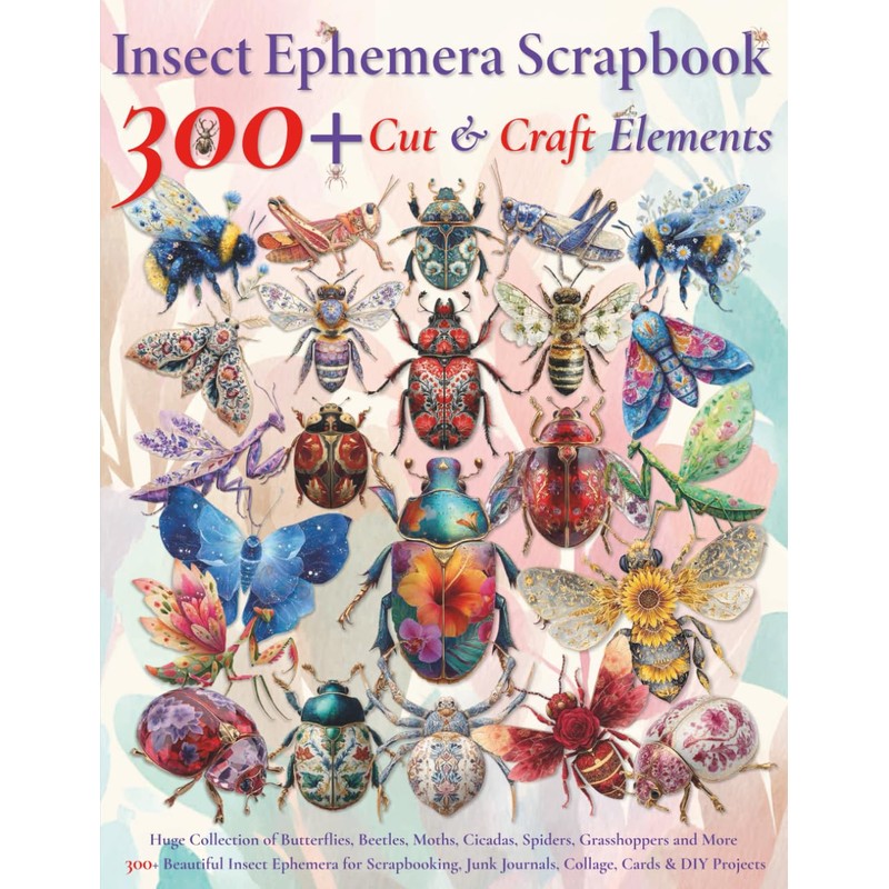 Insect Ephemera Scrapbook – 300+ Cut & Craft Elements: Huge Collection of Butterflies, Beetles, Moths, Cicadas, Spiders, and More – 300+ Beautiful ... Junk Journals, Collage, Cards & DIY Projects